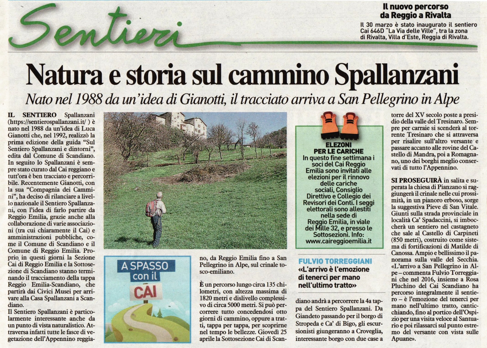 Non solo natura, ma anche cultura, storia e spiritualità caratterizzano i 135 km del sentiero Spallanzani che, dal centro storico di Reggio Emilia arriva sul crinale tosco emiliano, a San Pellegrino in Alpe, attraversando tutte le fasce vegetazionali dell’Appennino reggiano. Un cammino nato 30 anni fa, negli anni dimenticato e che la Compagnia dei Cammini, associazione di turismo sostenibile attiva anche nella valorizzazione e manutenzione di sentieri in Italia e in Europa, ha ripristinato e propone oggi come meta di trekking.